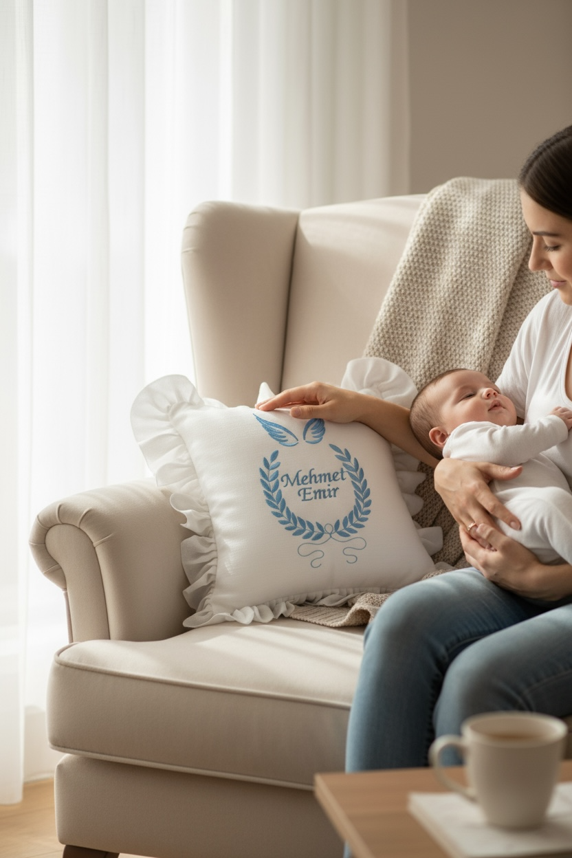 Cupid Melek Kanadı Nakışlı Bebek Yastık nakış seven annelere özel olarak tasarlandı. Asil şıklık mottosunu benimseyen annelerin vazgeçilmezi olan bu ürüne göz atmadan bebek alışverişinizi tamamlamayın.