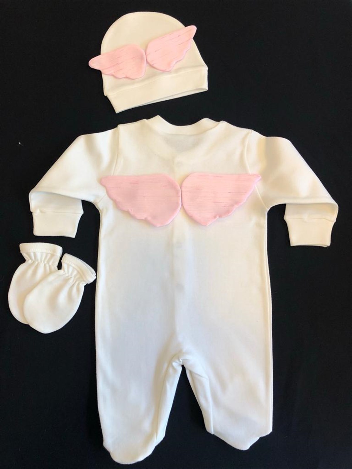 Customized Angel Wing Detailed Baby Coming Home Outfit 100% Cotton
