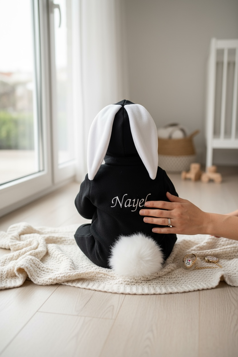 Night Siyah Tavşan Bebek Tulumu
